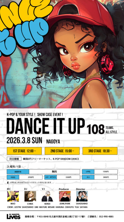 名古屋で開催されるK-POPダンスショーケース「Dance it Up NAGOYA」は、キッズから大学生・社会人まで幅広い世代が出演する108チーム参加の大型イベントです。